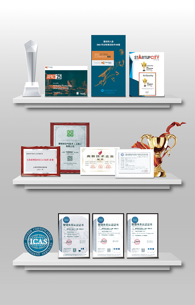 爱优特空气技术(上海)有限公司是上海市高新技术企业、专精特新企业、科技小巨人(培育)企业,并建有上海市专家工作站,拥有多项发明专利*。2022年荣获Cleantech Group评选的全球清洁技术Top100企业殊荣。